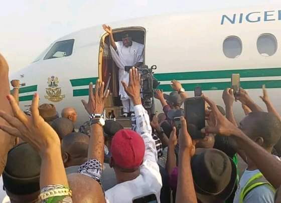 The SGF who will turn 70 years on 27 December, was received by a mammoth crowd who had gathered at the Airport waiting his arrival.
