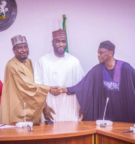 He was received by the Deputy President of the Senate, Barau Jibrin and the National Vice Chairman of the APC, Northeast, Mustafa Salihu, Thursday evening, in Abuja.