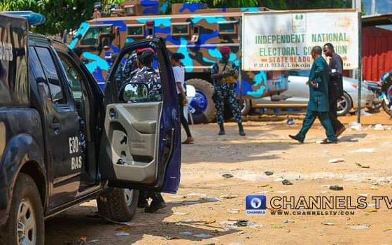 At the INEC headquarters in Lokoja on Friday, a notable presence of policemen, members of the Counter-Terrorism Unit, sniffer dogs, and an Armoured Personnel Carrier was observed.