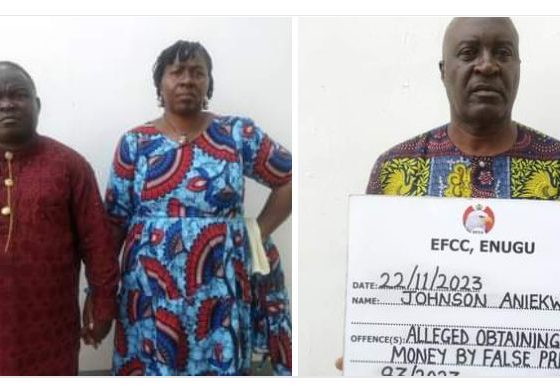 The Enugu Zonal Command of the Economic and Financial Crimes Commission has arraigned a man Simon Udeani, and his wife, Dorcas before Justice M.G. Umar of the Federal High Court sitting in Enugu.