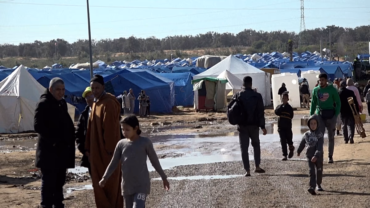 Near Kenitra, some 50 kilometres north of Rabat, authorities have set up a vast camp of small blue tents sheltering nearly 40,000 people, including Selami and her children.