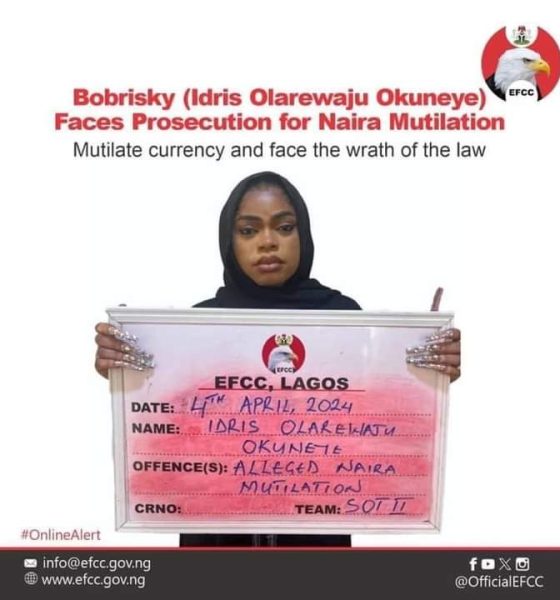News Photo: EFCC releases mugshot of Bobrisky after arrest over alleged naira mutilation Share Tweet Published 2 years ago on April 4, 2024 By admin Credit: X // EFCC Related Topics:BobriskyEFCC Up Next Georgia Father Arrested For Setting Daughters On Fire Don't Miss Borno Market Gutted By Fire Again Continue Reading You may like EFCC Quizzes Benue Officials ver alleged N4.6bn fraud EFCC Arraigns Lawyer for False Information VeryDarkMan Speaks Out After EFCC Detention: “I Use Debt for Charity” EFCC Arrests Aisha Achimugu, Linked to Sanwo-Olu, Over Alleged N8.7 Billion Money Laundering Scheme Nnamdi Kanu accused Justice Binta Nyako of refusing to step down from his case. EFCC Arrests 11 Chinese Nationals for Cyber Fraud, Terrorism in Lagos Click to comment Leave a Reply Cancel replyYour email address will not be published. Required fields are marked *Comment * Name * Email * Website Save my name, email, and website in this browser for the next time I comment. Δ Advertisement Latest News11 hours ago You’ll be held accountable if anything happens to El-Rufai, Atiku warns Tinubu’s govt News12 hours ago Tinubu removes Egbetokun as IG News15 hours ago ADC Demands Answers after Ambush on Army General’s Convoy News15 hours ago AGF Withdraws Forgery Charge Against Senior Lawyer, Ozekhome Politics17 hours ago Namdas Marks Ramadan with Food Outreach Across Constituencies News11 hours ago You’ll be held accountable if anything happens to El-Rufai, Atiku warns Tinubu’s govt News12 hours ago Tinubu removes Egbetokun as IG News15 hours ago ADC Demands Answers after Ambush on Army General’s Convoy News15 hours ago AGF Withdraws Forgery Charge Against Senior Lawyer, Ozekhome Politics17 hours ago Namdas Marks Ramadan with Food Outreach Across Constituencies News11 hours ago You’ll be held accountable if anything happens to El-Rufai, Atiku warns Tinubu’s govt News12 hours ago Tinubu removes Egbetokun as IG News15 hours ago ADC Demands Answers after Ambush on Army General’s Convoy News15 hours ago AGF Withdraws Forgery Charge Against Senior Lawyer, Ozekhome Politics17 hours ago Namdas Marks Ramadan with Food Outreach Across Constituencies