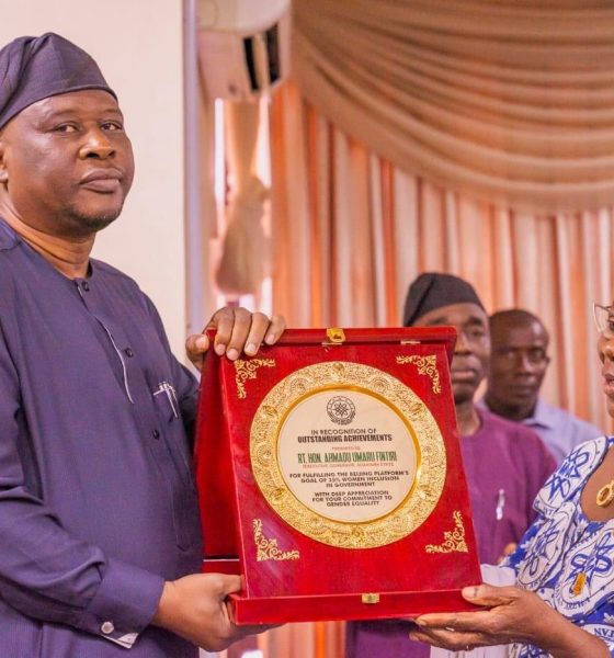 News PICTURE: Governor Ahmadu Umaru Fintiri Received of Award Excellence from Jamiyyan Matan Arewa Share Tweet Published 1 year ago on August 30, 2024 By admin Governor Ahmadu Umaru Fintiri has received excellence award from Jamiyyan Matan Arewa for implementation of the 35% affirmative action for women’s inclusion in governance. Photos by Thomas Terry Related Topics:Adamawa StateArewaFintiriGov fintiri Up Next Tinubu Name Adeolat Oluwatosin as the New Director-General of the Department of State Services Don't Miss Adamawa Govt Approves N19.7bn Jimeta Modern Shopping Complex Project Continue Reading You may like FEDERATION OF PUBLIC SERVICE GAMES 2025 OPENS IN YOLA WITH RECORD-BREAKING TURNOUT Scabies Outbreak Spreads Across Guyuk LGA, Infects Over 150 Residents How an Adamawa engineer is powering food security through engineering solutions Back to Business: Jimeta Modern Market Reopens After Demolition First Lady Remi Tinubu Donates ₦500 Million, Relief Materials to Adamawa Flood Victims Gov Fintiri Empowers Judiciary with 23 New SUVs to Boost Justice Delivery in Adamawa Click to comment Leave a Reply Cancel replyYour email address will not be published. Required fields are marked *Comment * Name * Email * Website Save my name, email, and website in this browser for the next time I comment. Δ Advertisement Latest News3 hours ago JUST IN: President Tinubu Stumbles And Falls During State Visit To Turkey News9 hours ago Nigerian Military Officers Head to Trial Over Alleged Coup Plan Sports12 hours ago Adamawa’s Tennis Prodigy, Heman, Strikes Gold at National Junior Championship Crime18 hours ago Adamawa Police Confirm Madagali Attack, Launch Joint Rescue Operation News1 day ago JUST IN: Kwankwaso’s son resigns as Kano commissioner News3 hours ago JUST IN: President Tinubu Stumbles And Falls During State Visit To Turkey News9 hours ago Nigerian Military Officers Head to Trial Over Alleged Coup Plan Sports12 hours ago Adamawa’s Tennis Prodigy, Heman, Strikes Gold at National Junior Championship Crime18 hours ago Adamawa Police Confirm Madagali Attack, Launch Joint Rescue Operation News1 day ago JUST IN: Kwankwaso’s son resigns as Kano commissioner News3 hours ago JUST IN: President Tinubu Stumbles And Falls During State Visit To Turkey News9 hours ago Nigerian Military Officers Head to Trial Over Alleged Coup Plan Sports12 hours ago Adamawa’s Tennis Prodigy, Heman, Strikes Gold at National Junior Championship Crime18 hours ago Adamawa Police Confirm Madagali Attack, Launch Joint Rescue Operation News1 day ago JUST IN: Kwankwaso’s son resigns as Kano commissioner