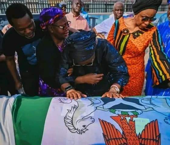 Family members, followers, friends, and associates could not control their emotions as the body of the late Governor was being lowered from the plane.