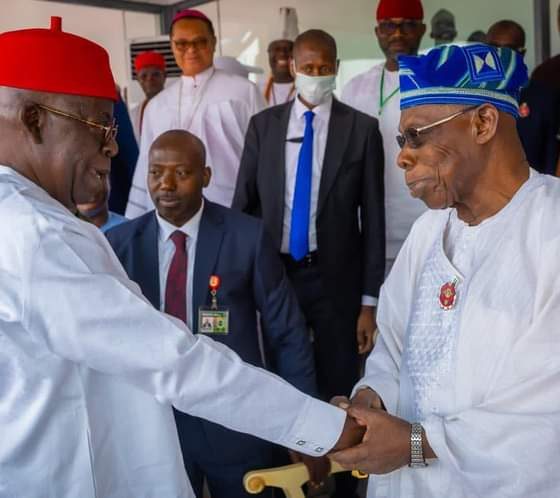 Tinubu, Obasanjo Exchange Warm Greetings In Imo
